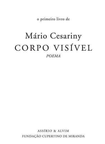 Corpo Visível marca o início de uma nova colecção da Assírio & Alvim: «O Primeiro Livro de…», edição em fac-símile do primeiro livro publicado por vários autores.