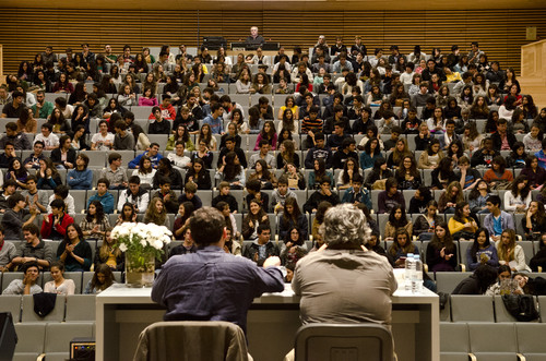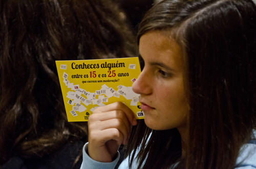 Quase um ano após o lançamento das páginas «15/25», e da respetiva Volta a Portugal por escolas e bibliotecas, a visita à Escola Secundária Quinta das Flores, em Coimbra, na passada quinta-feira (25 de outubro), é a prova mais recente de um projeto que continua a superar as melhores expectativas. Mais de 300 alunos encheram um magnífico auditório para receber a LER (João Pombeiro, diretor, e José Riço Direitinho, escritor e colaborador da revista). Alguns dos alunos presentes já participaram no «15/25» e outros prometeram participar. Ao completar 25 anos, a LER sente-se muito bem no seu papel – acompanhar e promover os jovens talentos portugueses. E acreditem: 25 de outubro de 2012 foi um dia muito especial.