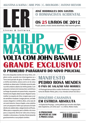 Mais uma edição exclusiva da LER: entrevista com John Banville, o escritor irlandês que fará regressar Philip Marlowe; o ensaio-manifesto de Pedro Rosa Mendes sobre os dias que vivemos; os 25 livros de 2012; um perfil de José Rodrigues dos Santos; a estreia de Rogério Casanova no conto policial e muito, muito mais. Dia 3 de janeiro nas bancas!