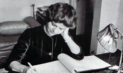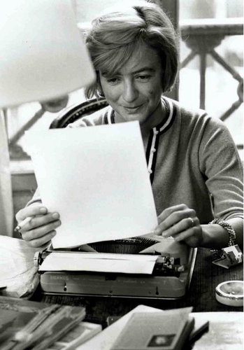 Mlle. Françoise Sagan, relendo uma página: